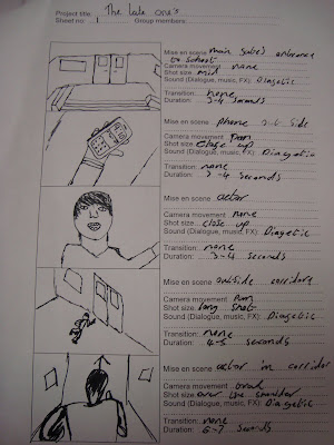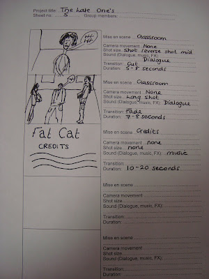 when we began filming for or continuity exercise we used our story board as much as we could so that all the shots appeared as they did in the story board. in or group of 5 we all shard the time spent on drawing the story board.